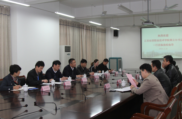 3月22日下午,江苏经贸职业技术学院党委书记蒋云尔一行7人来我校考察交流。我校党委书记朱爱胜及相关职能部门负责人与宾客在国际交流中心205会议室进行了座谈交流。