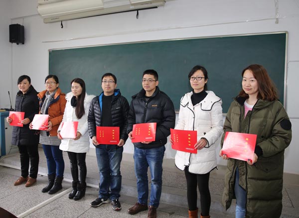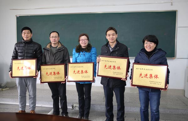 会上对2015年度安全保卫工作先进集体和先进个人进行了表彰,机械技术学院、艺术与设计学院、体育部、图书馆、后勤服务总公司被评为2015年度先进集体,物联网学院陈慧等15人被评为先进个人。