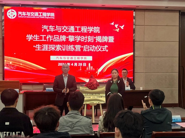 为进一步激发学生成长成才的内生动力,增强大学生职业生涯规划素养,4月26日下午,汽车与交通工程学院在国际交流中心二楼报告厅开展了学工品牌“擎学时刻”揭牌暨“生涯探索训练营”启动仪式。副校长强伟纲、汽车学院党总支书记张美娟、副书记刘雄、优秀校友郭祥龙、辅导员及近70余名学生代表参加了本次活动。