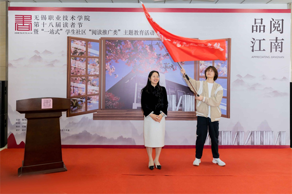当天的活动中还发布了第十八届读者节暨“一站式”学生社区“阅读推广类”主题教育活动主要内容,表彰了2023年度优秀读者、优秀志愿者和优秀学生馆员。学生读者代表许昌分享了他的阅读经验;边露、任重威、李沛等10名教工应邀受聘学校阅读推广大使,“阅江南”图书馆志愿者服务队也正式授旗成立。