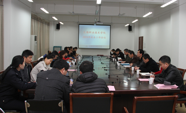 3月18日下午,国际交流中心205会议室召开学校2015年安全工作会议。雪浪派出所冀晓华警官、校党委副书记谈向群、2014年度安全先进集体代表、各学院、各职能处室安全工作联络人出席会议。