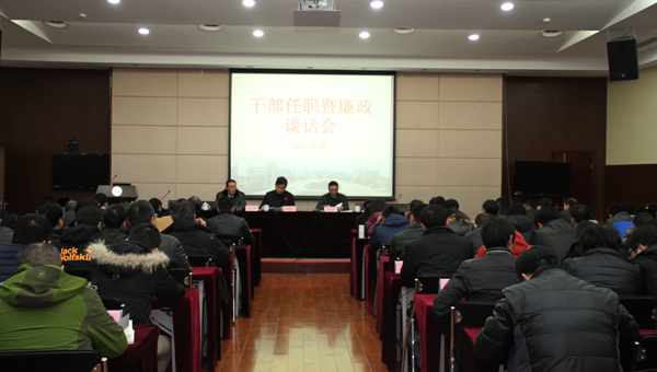 1月28日下午,我校在国际交流中心二楼报告厅召开干部任职暨廉政谈话会。宣布新一轮中层干部(含助理)任职通知,进行干部任职前廉政谈话,并部署下一步工作。全校副科级及以上干部参加了会议。
