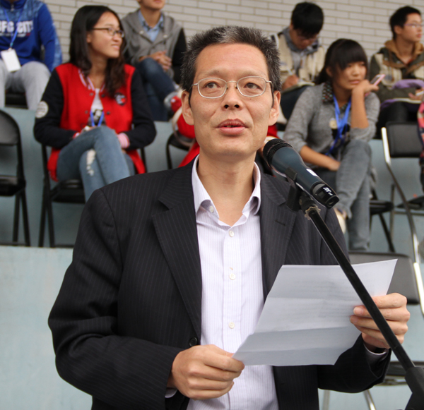 在庄严的升国旗仪式后,副校长华坚代表组委会致开幕词,全面回顾了我校过去一年开展阳光体育活动所取得的成果,要求全体裁判员严格执法、保证赛事公平,勉励运动员们努力拼搏、赛出风格、赛出水平。华坚副校长指出,在过去的一年里,我校师生运动员奋力拼搏、力争上游,在诸多体育赛事上斩获奖项,曾获得江苏省第二十一届高校“校长杯”乒乓球赛高职高专组团体第五名、在全省第十八届运动会高校乙组田径比赛揽获2金1银、获省运会高校部跆拳道比赛金牌1枚和无锡市第十一届运动会健美操比赛高校组一等奖等优异成绩。