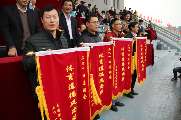 7日下午的闭幕式上,全体校领导为获奖个人和集体颁奖。校党委副书记谈向群致闭幕词,要求大家在今后的工作、学习和生活中继续发扬奋发图强、勇争第一的向上心态,彰显坚忍不拔、永不言败的顽强意志,展现团结友爱、通力协作的良好风尚,坚持公平竞争、公正评判的道德品质,并融入积极锻炼、强身健体的时尚风气,为学校发展做出更大贡献。校长龚方红宣布2014年秋季运动会正式闭幕。(宣传部)