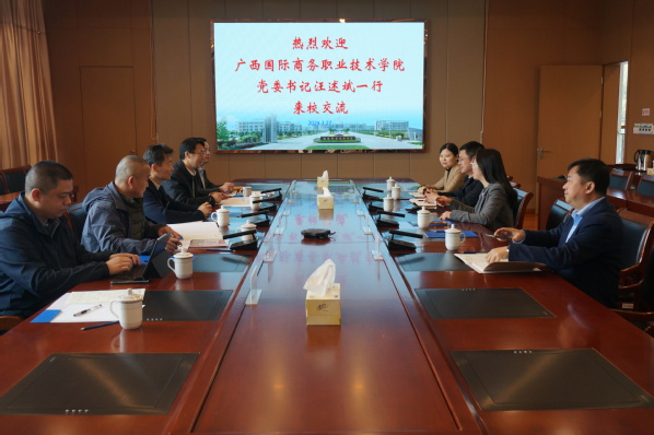 汪述斌对我校的热情接待表示感谢,并介绍了广西国际商务职业学院的基本情况。他希望借鉴我校在“双高”校建设与职业本科创建等方面的先进做法和宝贵经验来推动学校高质量发展。