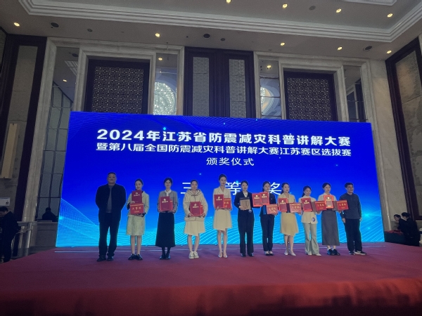 3月27日,第八届江苏省防震减灾科普讲解大赛决赛在宿迁落下帷幕,来自全省各地的38名选手参加了总决赛。经过激烈角逐,由我校基建处顾培刚和倪佳老师指导的文旅学院黄嘉琪同学荣获三等奖。