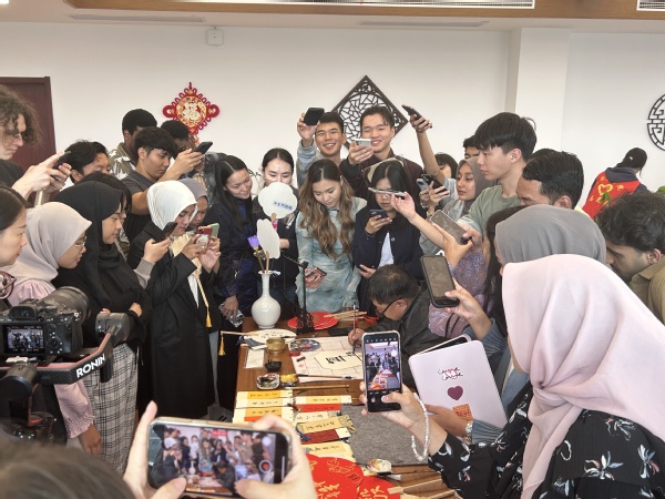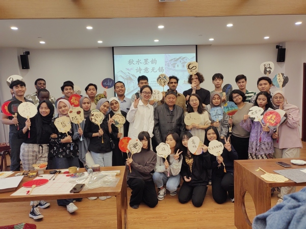 为进一步讲好中国话故事、传播好中国声音,提高留学生汉语水平、加深中国文化体验,10月17日下午,国际教育学院在崇德楼孔子课堂举办汉语角专场活动——“秋水墨韵·诗意无锡”留学生书画雅集跨文化体验之旅。副校长吴慧媛,国际教育学院、爱尔兰学院全体领导、教师,校读者协会成员参加活动。