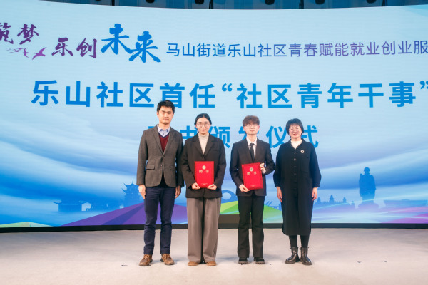 12月5日,滨湖区马山街道乐山社区在无锡贝勒生命养疗中心一楼报告厅举行青春赋能就业创业服务行动启动仪式。我校学生干部刘相飞和刘心怡两位同学在仪式上受聘为乐山社区首任“社区青年干事”,校团委书记郑月圆和滨湖团区委副书记许心愿为他们颁发聘书。
