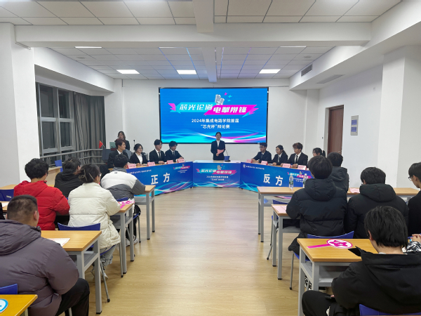 为丰富“一站式”学生社区文化生活,培养学生的创新思维、表达能力和团队协作精神,集成电路学院举办首届“芯光杯”辩论赛。经过初赛和复赛角逐,决赛于12月10日在图B-608拉开帷幕,展开了一场思想与智慧的精彩对决。