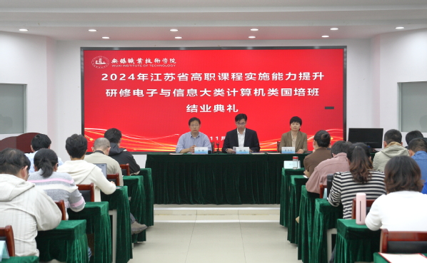11月15日,由物联网工程学院承办的江苏省高职课程实施能力提升研修班(电子与信息大类计算机类国培班)经过为期4周的紧张学习,圆满完成了各项培训任务,顺利结业。结业典礼在图C-401举行,学院党总支书记谢欢、继续教育与培训部副部长曹冬美、全体学员及培训班工作人员出席,典礼由肖颖主持。