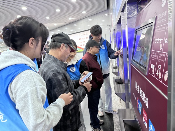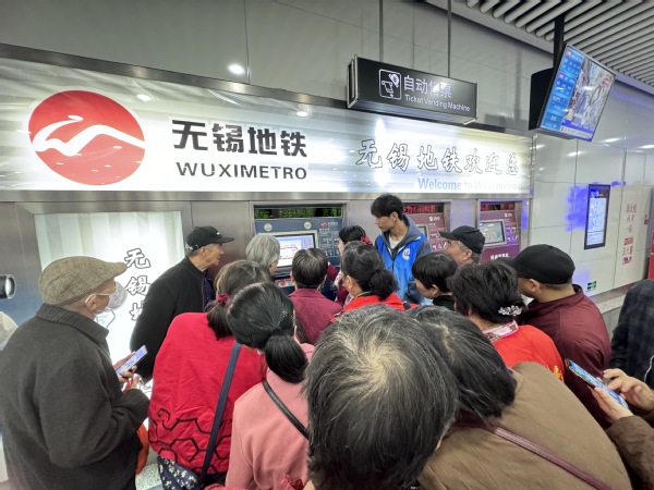 参观完周新里古镇后,一行人又来到了市民中心地铁站。无锡地铁的工作人员向大家展示了如何使用地铁购票机购票以及如何通过微信和支付宝乘坐地铁的详细步骤。老年学员们聚精会神地聆听,随后在志愿者们的帮助下纷纷尝试操作,体验着科技带来的便利与舒适。