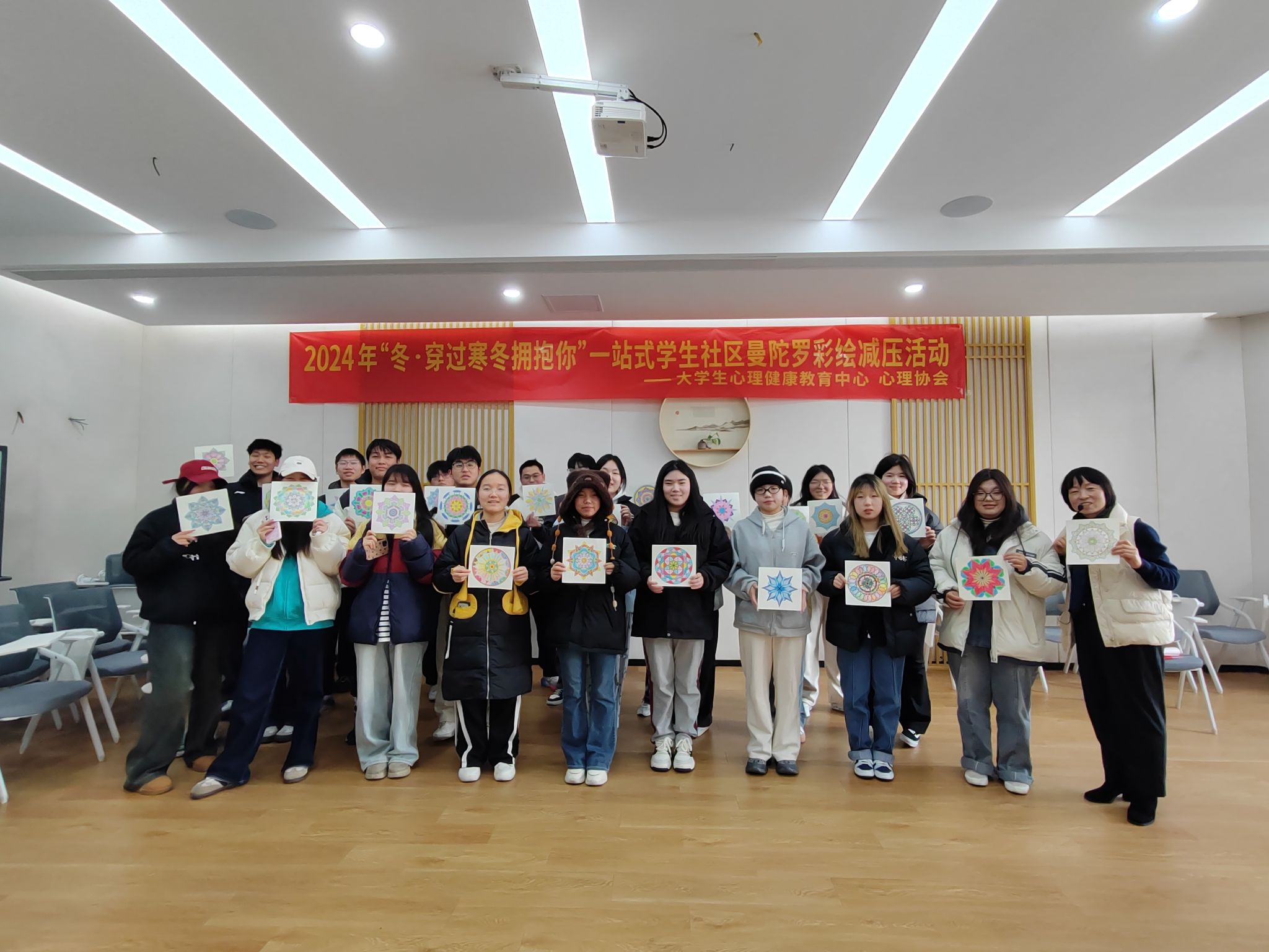12月24日下午,一场别开生面的曼陀罗减压活动在心理中心103团辅室温馨举办,活动由学校大学生心理健康教育中心主办,心理协会协办,吸引了全校50余名寻求心灵慰藉与压力释放的同学踊跃参与。