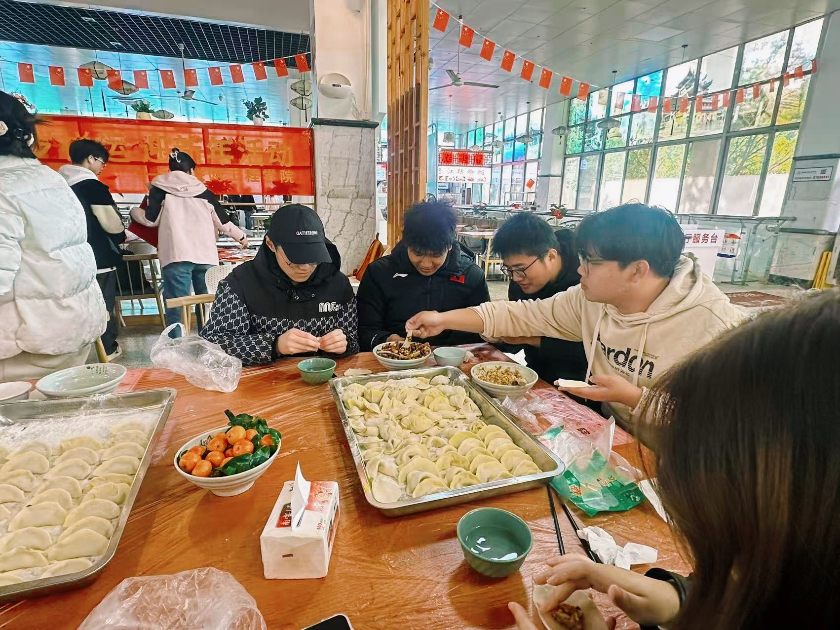 在包饺子和书法创作的过程中,师生们畅所欲言,分享着生活中的趣事、家乡的风土人情以及校园生活的美好瞬间。随着一盘盘热气腾腾、形态各异的饺子出锅,整个餐厅弥漫着诱人的香气。师生们围坐在一起,品尝着自己亲手包的饺子,让这个寒冷的冬日变得格外温馨。