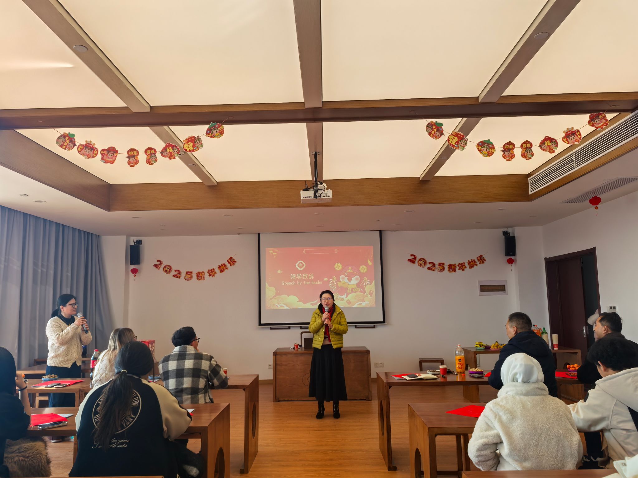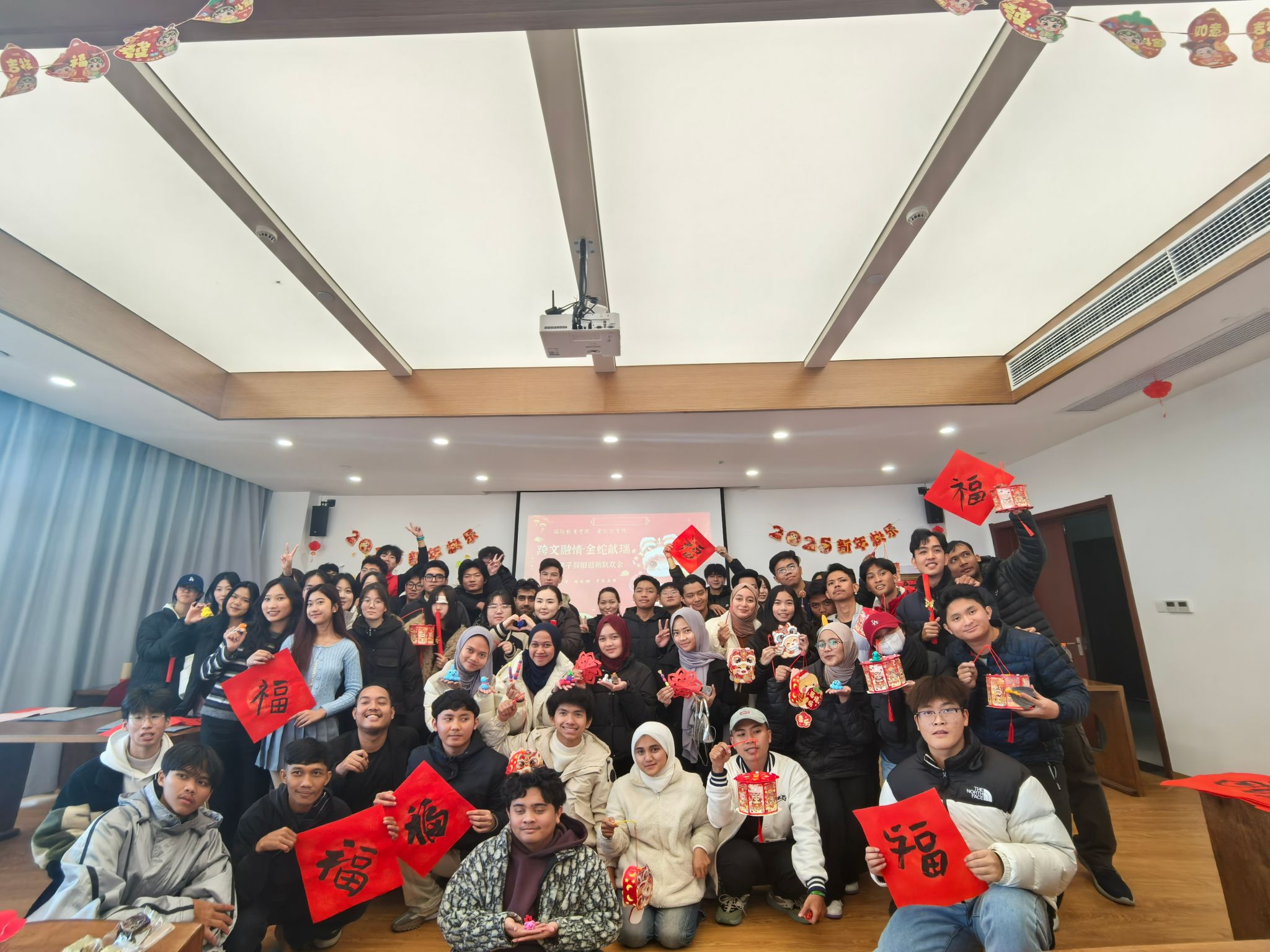 在2024年岁末之际,国际教育学院举行了“跨文融情·金蛇献瑞”中外学子辞旧迎新联欢会。中国学生和留学生们欢聚一堂,共同迎接新年到来。活动现场充满了欢乐祥和、温馨温暖以及浓郁的跨文化交流氛围。副校长吴慧媛、学院党政领导班子、关工委老同志董芳参与了此次活动,为学生们送来了殷切的关怀和美好的祝福。