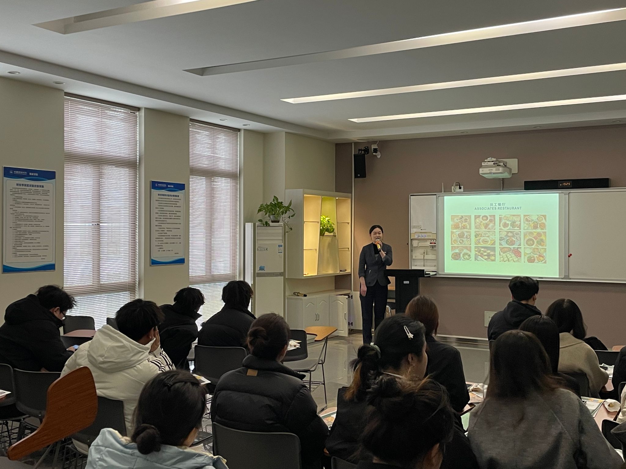 作为无锡苏宁凯悦酒店餐厅经理,石双双校友结合自身经历展开分享。她回顾了从星空app官网毕业后,如何从基层服务岗位起步,逐步成长为酒店管理者的历程,强调“扎实的专业知识、持续的学习能力和主动担当的职业精神”是突破职业瓶颈的关键,并鼓励学弟学妹珍惜在校实践机会,及早谋划未来职业发展,积极参与行业交流活动,拓宽职业视野。精彩的分享赢得现场同学热烈的掌声。