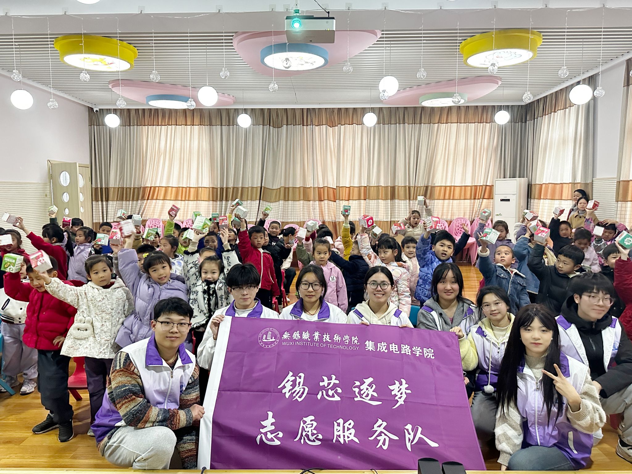 为深入学习贯彻习近平总书记关于志愿服务的重要论述和系列重要指示批示精神,培育和践行社会主义核心价值观,3月12日,集成电路学院“锡芯逐梦”志愿服务队走进滨湖区保利幼儿园,联合开展“榜样精神润童心”主题志愿活动。活动通过红色故事宣讲、爱心图书捐赠等环节,引导幼儿感悟榜样力量,践行奉献精神,并为偏远地区儿童送去知识与关怀。