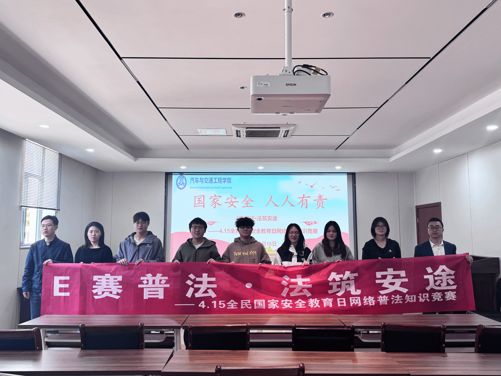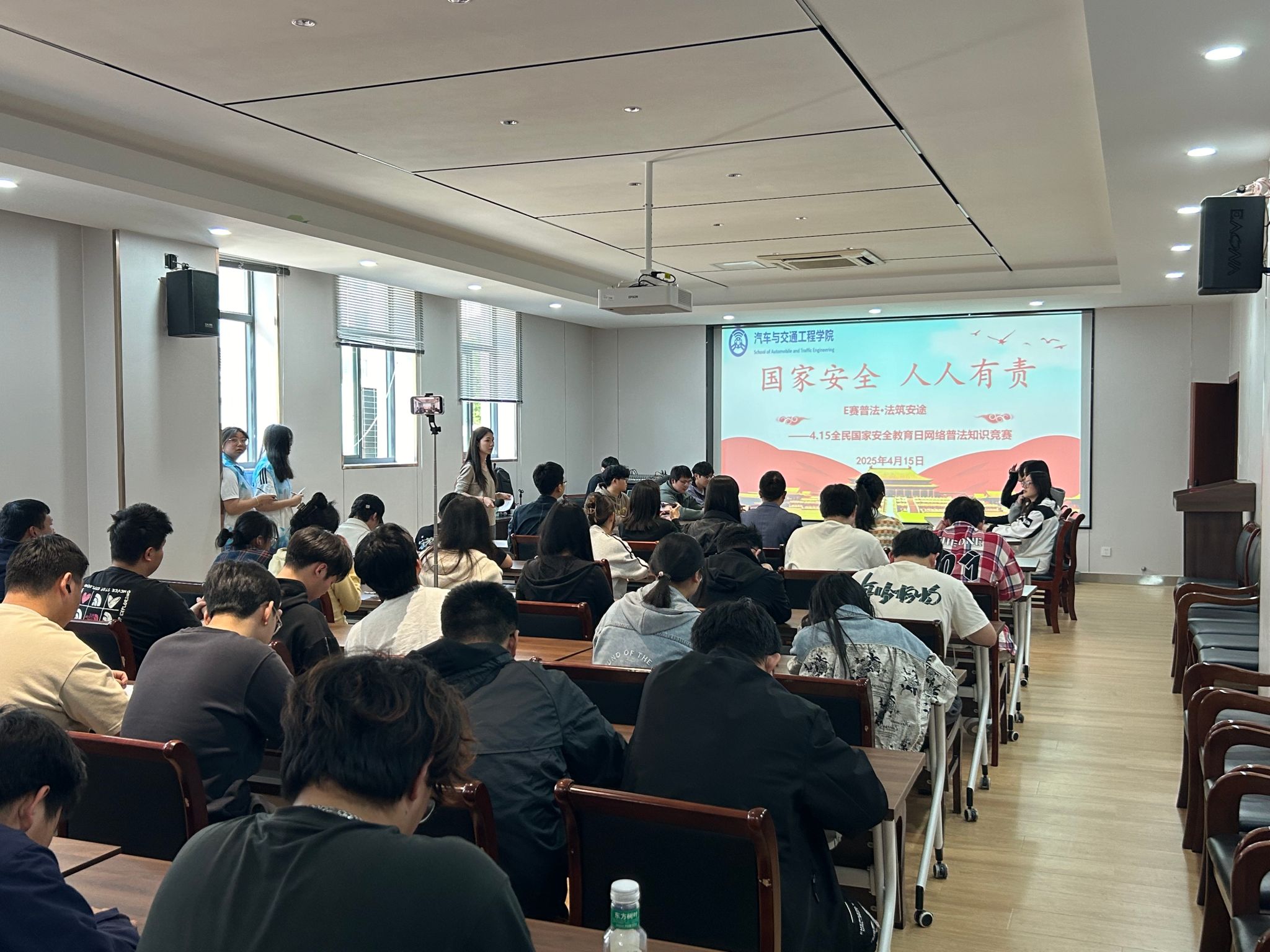 为推动国家安全宣传教育工作深入开展,贯彻落实2025年无锡市网络普法工作要求,进一步增强大学生的国家安全意识,在第十个全民国家安全教育日到来之际,4月15日下午,汽车与交通工程学院在国教206教室举办了以“E赛普法·法筑安途”为主题的“4.15”全民国家安全教育日网络普法知识竞赛决赛活动。汽车学院党总支副书记刘雄、辅导员、50余名学生代表参加本次活动。