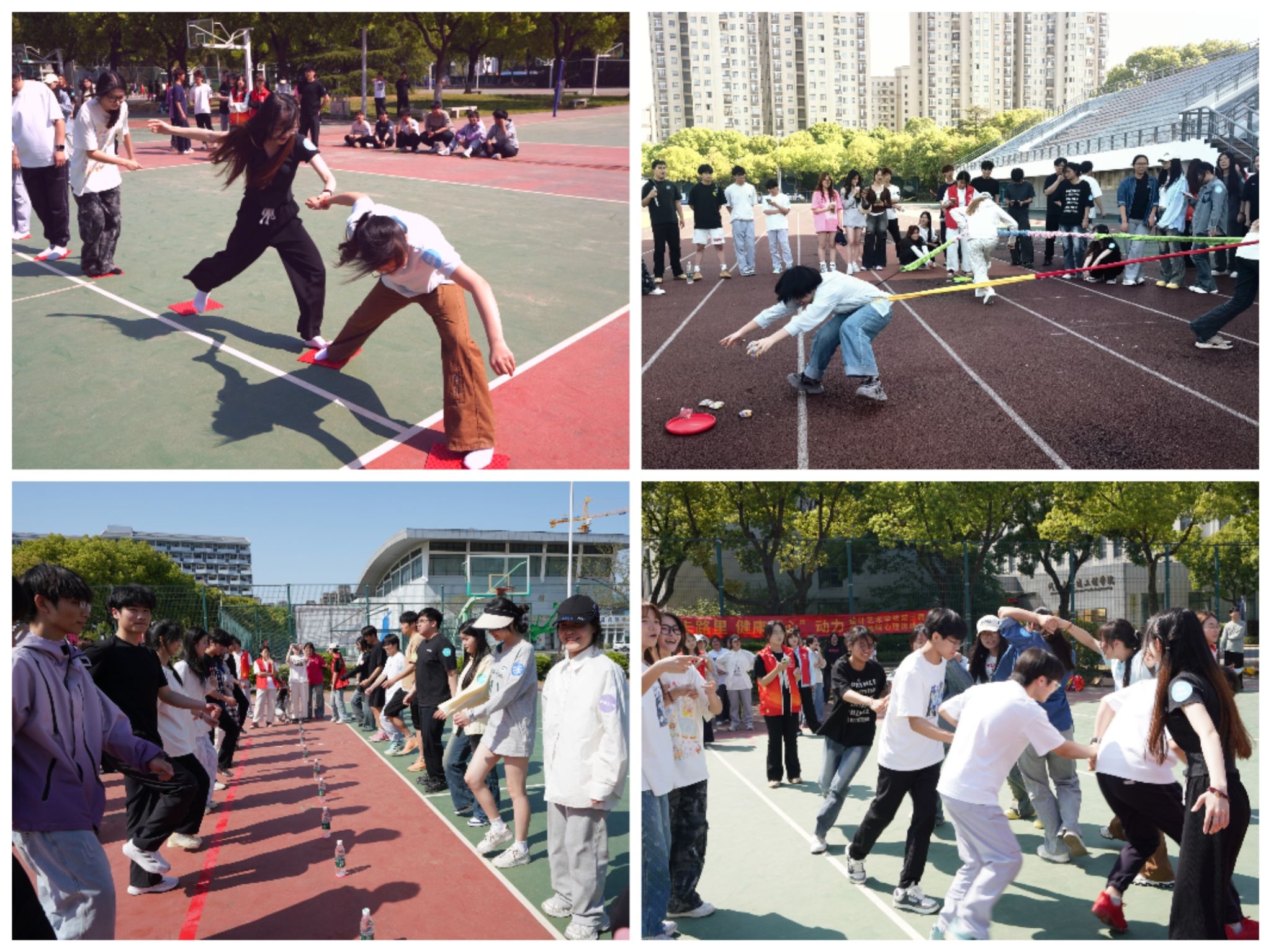 为积极响应“体重管理年”活动号召,倡导阳光运动理念,丰富校园文化生活,促进师生心理健康,4月15日下午,设计学院联合校体育部在体育场举办“一站式”学生社区第三届师生趣味心理运动会。本次活动以“燃烧卡路里,健康‘心’动力”为主题,吸引了来自室内23321班“智趣双赢队”、数媒24322班“风雨无阻队”、产品24322班“第一梯队”等9支队伍近百名师生热情参与。