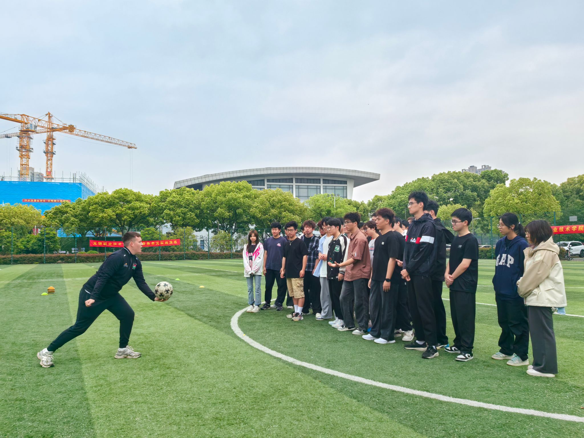 4月22日,中爱大学生足球人文交流活动在我校足球场举办。爱尔兰香农理工大学足球教练Tristen Diskin到校交流,并与我校爱尔兰学院学生开展足球人文交流活动。爱尔兰学院党总支书记李湘、副院长孙台维、体育部主任冯伟等相关负责人出席活动。