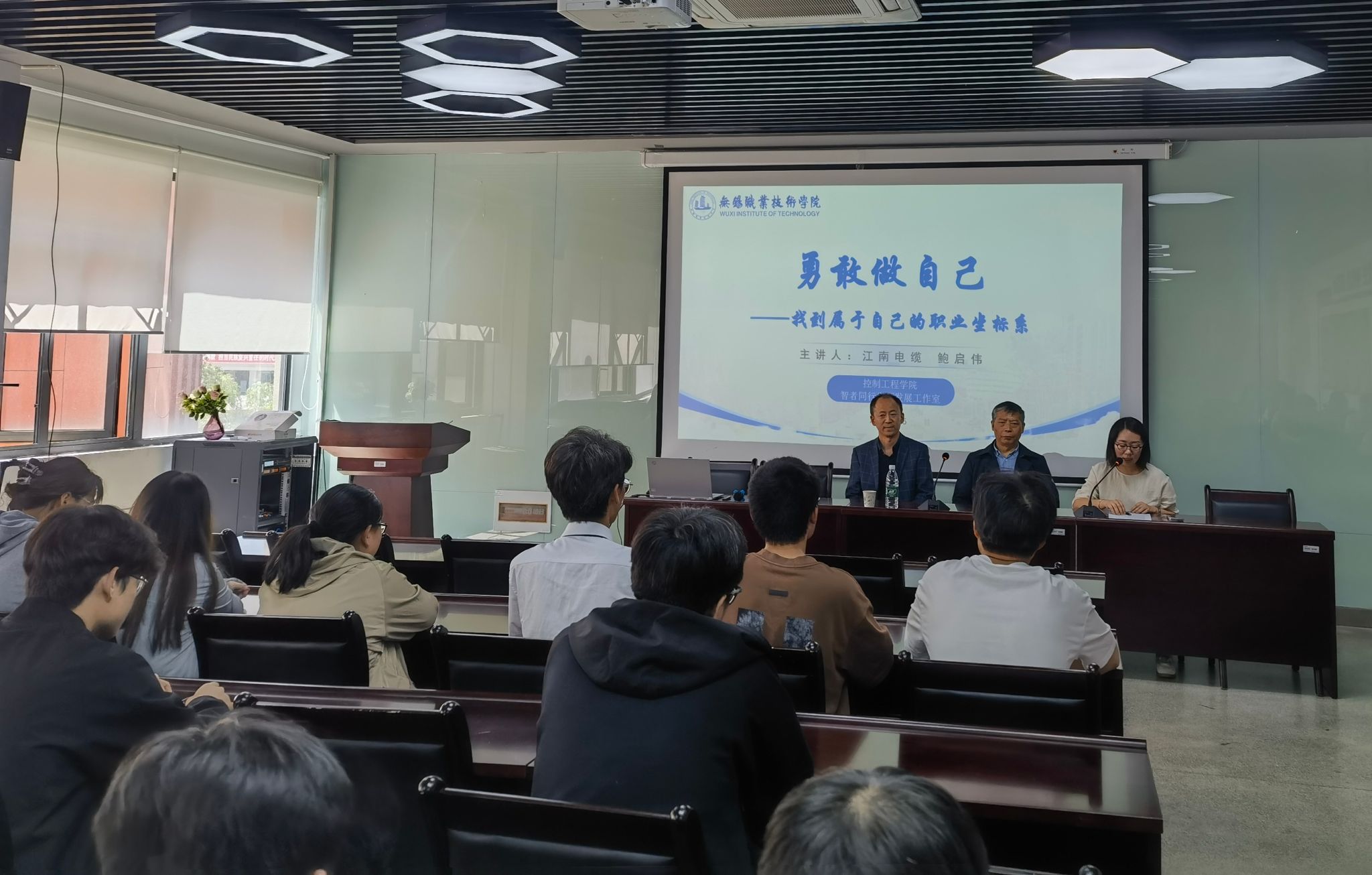 4月25日,控制工程学院特邀无锡江南电缆有限公司党委副书记兼宣传委员、副总工程师、首席质量官兼质量总监鲍启伟,以“勇敢做自己——找到属于自己的职业坐标系”为主题举办讲座,吸引了八十余名师生参与。此次活动由“智者同行”生涯发展工作室承办,结合“劳模工匠进校园”活动,聚焦智能制造行业数字化转型与人才需求,为学生职业发展提供精准指导。