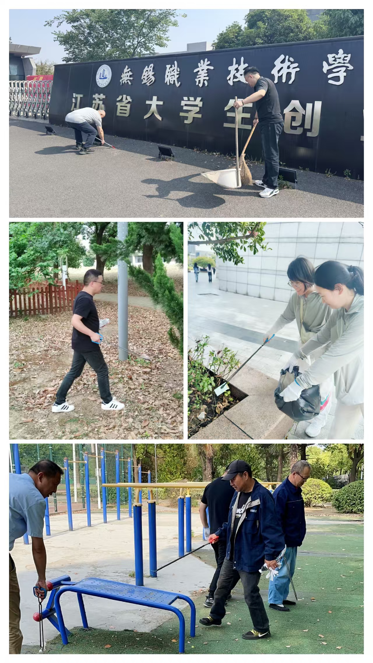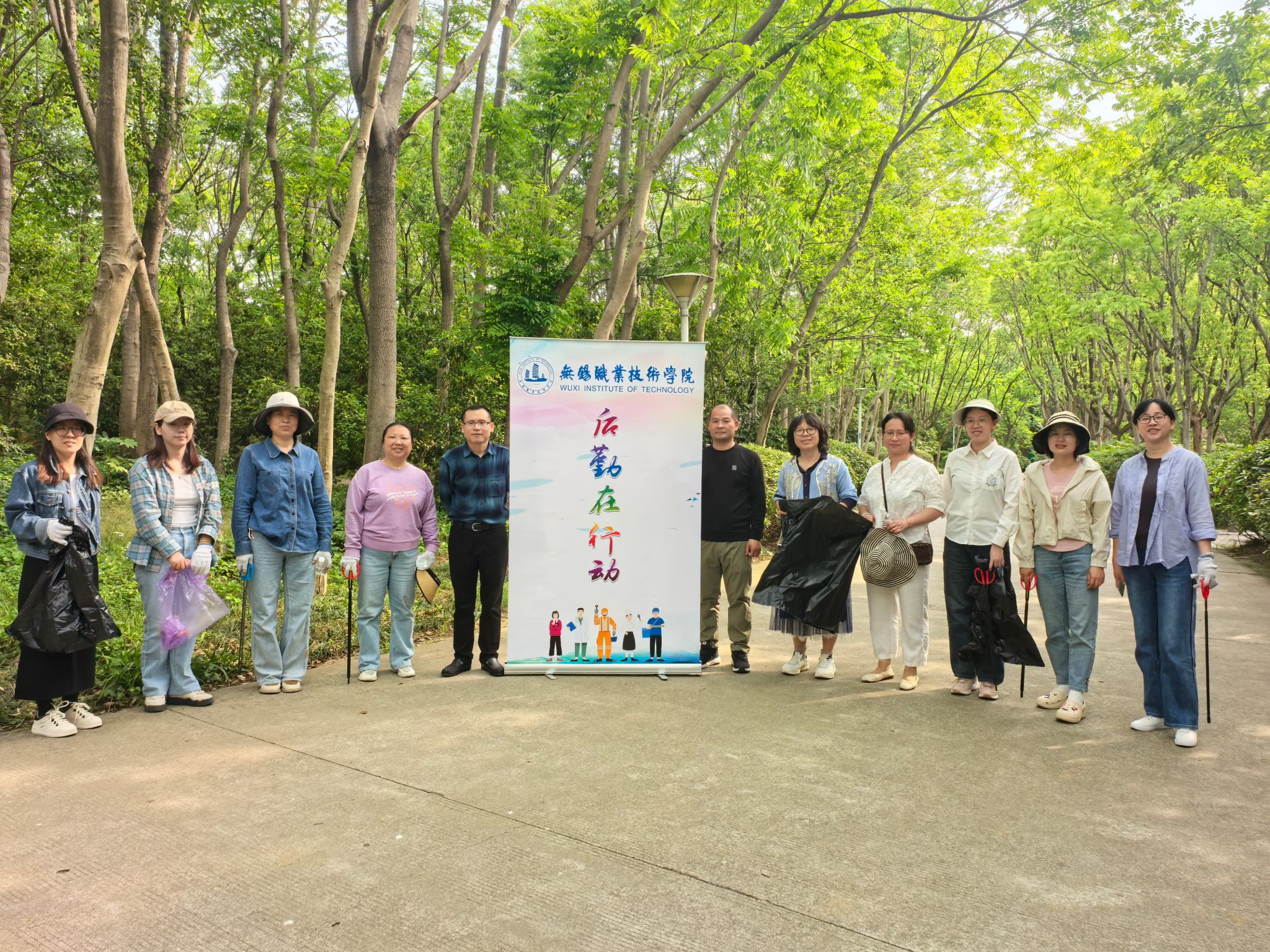 活动前,后勤分工会为活动开展,精心准备了70余套长柄夹、可降解垃圾袋和劳保手套。教职工们在图书馆大门口集合,签到领取工具。大家五六人为一组,携带工具,按指定路线,在校内、校外开展捡拾垃圾。大家怀着高昂的热情,积极营造更加宜学宜教的校园环境,湖边、草丛旁、主干道上都是后勤人弯腰捡拾的身影,捡起的是垃圾,传递的是文明,收获的是美景,为春日校园增添了别样的风景。