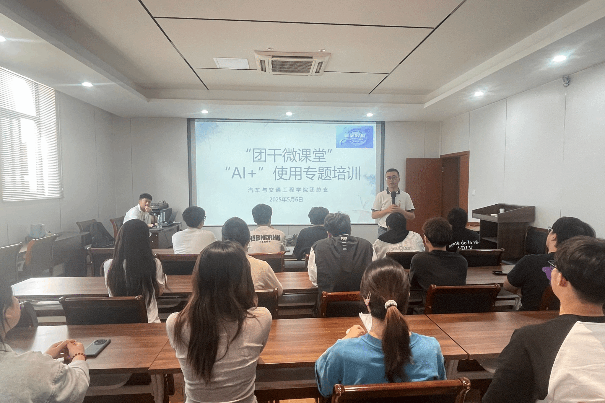 为深化团学干部对人工智能的理解和应用,探索智能化手段赋能团学工作创新,提升团学工作效率,5月6日下午,汽车与交通工程学院在国教206举行“团干微课堂”“AI+”使用专题培训,内容涵盖AI在团学工作中的应用、PPT制作技巧、视频剪辑演示等多个环节,30余名教师代表、分团委、学生会学生干部参加活动。