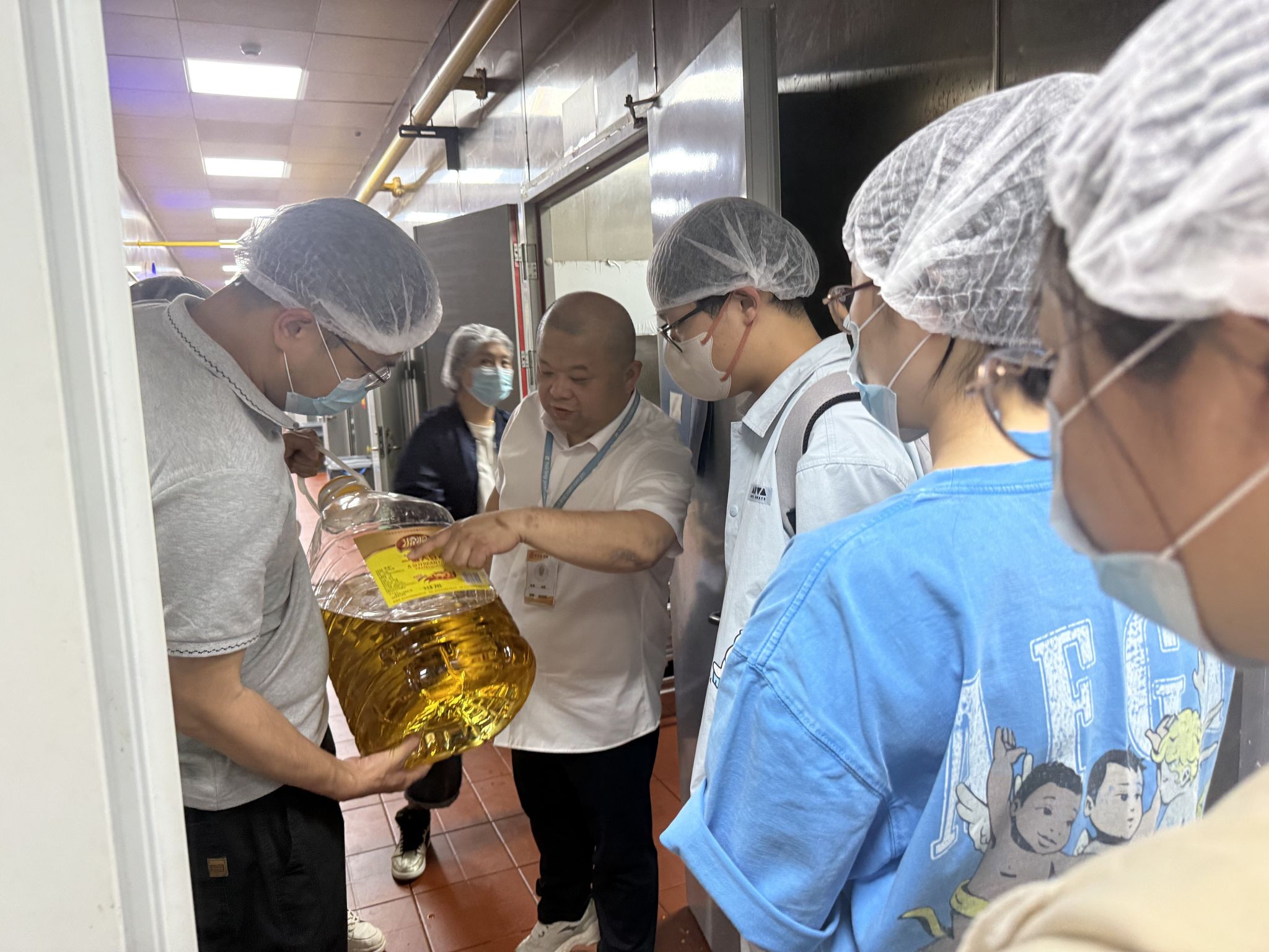 为了让师生更深入了解食堂运作,展现安全、公开透明的服务理念,师生代表走进学生食堂后厨,在学校食堂相关负责人的引领下,依次参观了原料储藏区、粗加工间、餐具消毒区、烹饪间、食品留样区、备餐间等场所,全环节了解食材采购、验收、储存、清洗、切配、加工制作、备餐等食品加工制作流程。