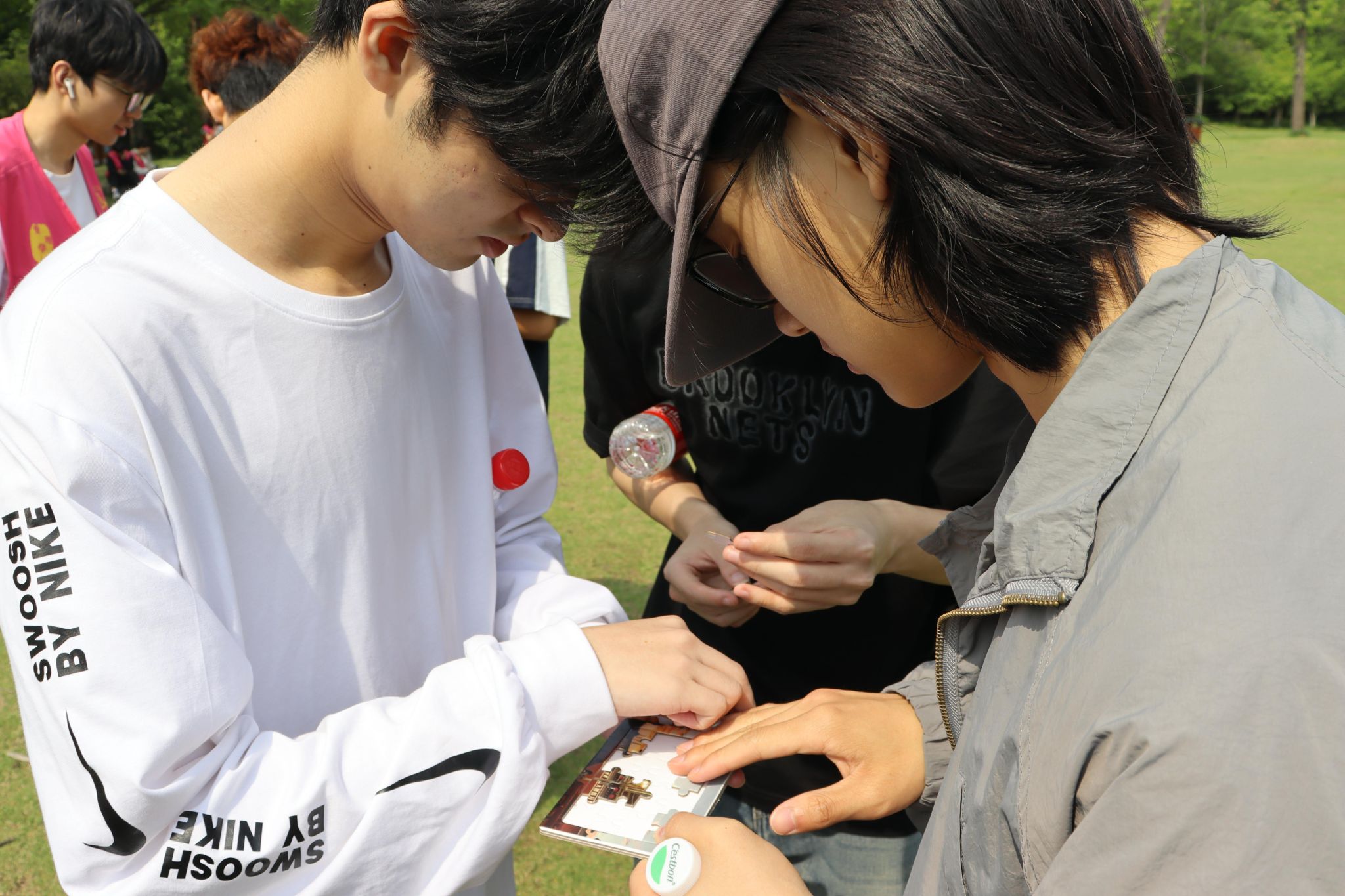 本次活动精心设计"三站式"教育路线。首站"奋进新征程"徒步环节中,40余名学生骨干集体前往长广溪湿地公园。3公里徒步行程既是对体能的适度考验,更让青年学子在湖光山色间体会"红军不怕远征难"的坚韧品格。第二站"星火共传承"拼图挑战中,各班级围坐成阵,通过分工协作复原长征主题画卷。同学们或专注拼接细节,或统筹整体布局,在方寸拼图间重现狼牙山五壮士、天安门广场等历史场景,于协作中深化对党史的具象认知。第三站"薪火永相传"模拟长征环节,跨班级组建三支红军队伍,借助特制的长征路护送“革命火种”小球前行。团队成员需精准配合控制球体轨迹,以现代方式演绎过草地、爬雪山、巧渡金沙江、血战湘江等经典战役,切身感受战略协同的重要性。