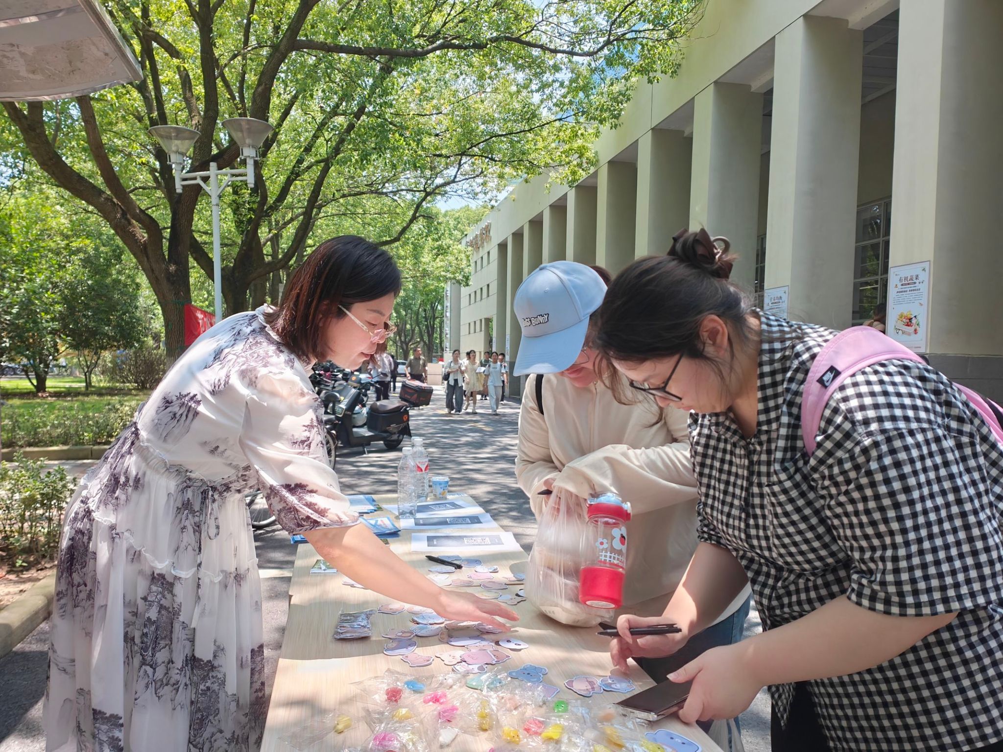 为深入贯彻中央八项规定精神学习教育,全面落实立德树人根本任务,充分发挥基层党组织的战斗堡垒作用和党员的先锋模范作用,增强广大党员的服务意识,基础课部党总支于6月17日在一食堂门口开展了以“与焦虑和解 与热爱同行”为主题的志愿服务活动,让学生们在紧张的期末学习中感受温暖与关爱。