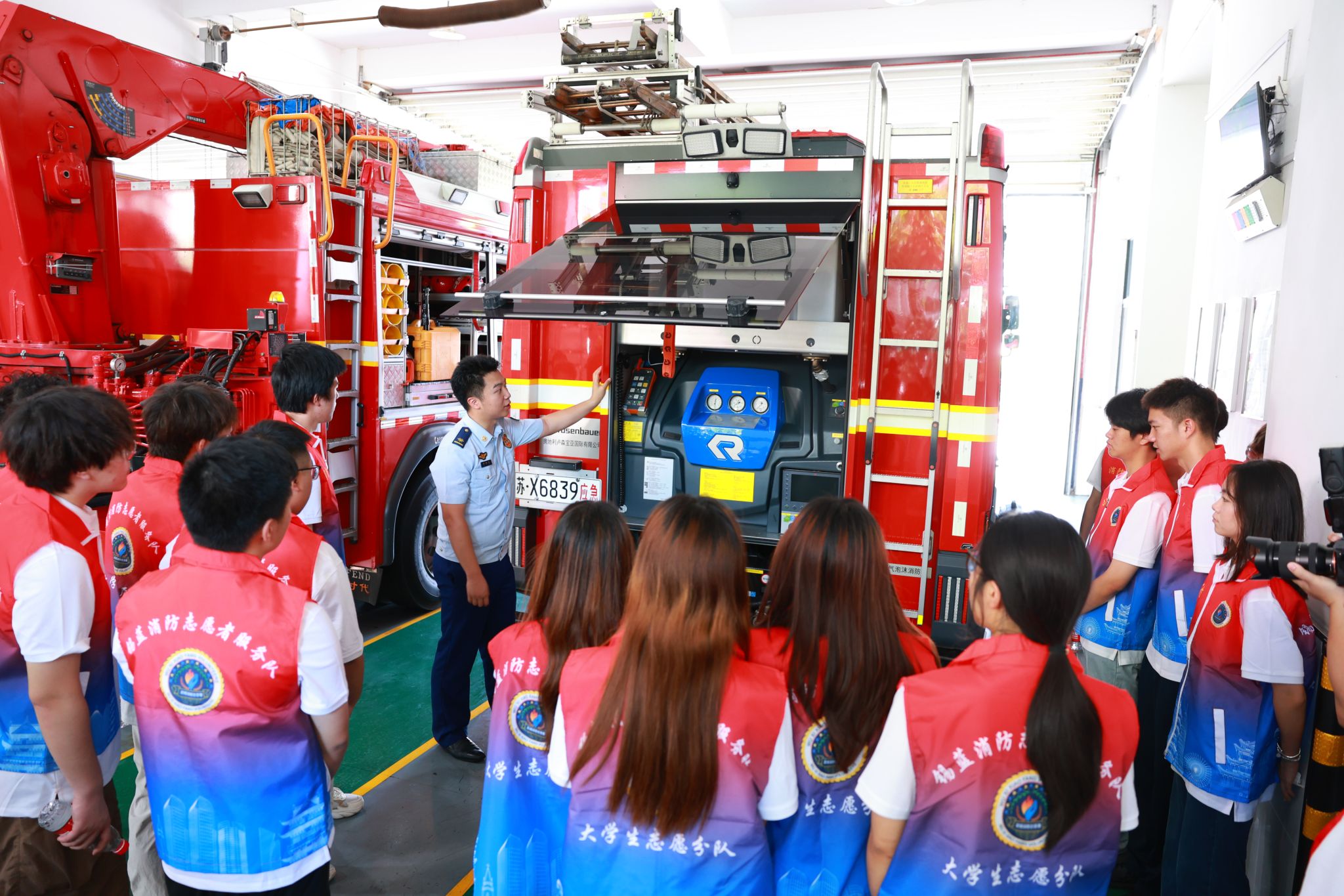 在消防指战员带领下,我校师生走进消防员内务宿舍,感悟“豆腐块”背后的严明纪律;探访装备库,感受现代化救援力量的使命担当;聆听专业讲座,提升消防安全意识和应急能力;参与高层建筑实地检查,体验守护城市安全的责任之重。