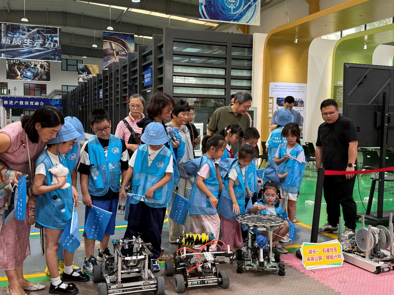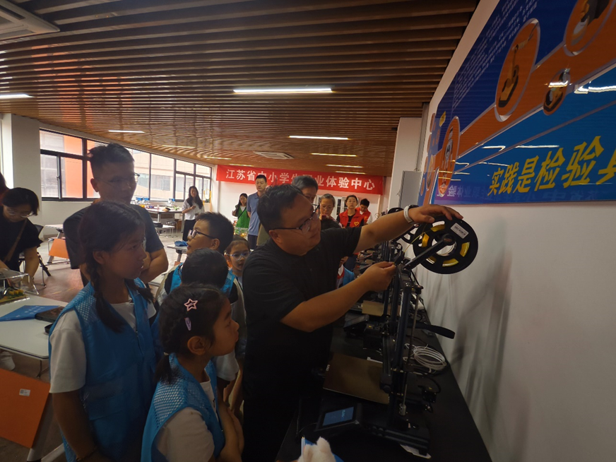 7月16日,开源创新创业学院携手党建共建单位石塘社区组织20名小学生代表开展“小小梦想家”职业启蒙之旅,参观我校江苏省中小学生职业体验中心。