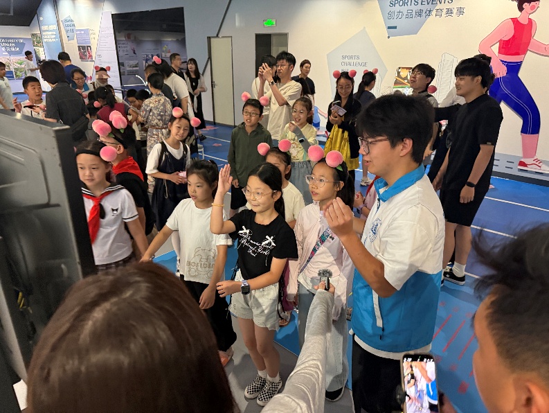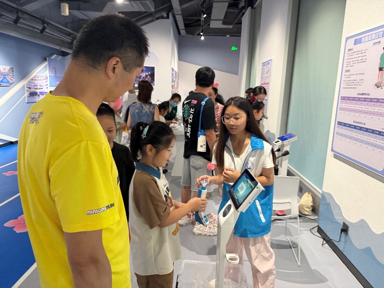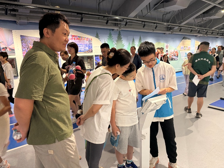 在为期三天的陈列馆开放日和临展活动中,志愿者们化身“奥运精神传播者”与“全民健身推动者”,架起文化场馆与大众的桥梁。展馆内人头攒动,“这是何振梁先生传递北京奥运会火炬时的全套装备,”讲解志愿者向参观者们介绍,“这些珍贵的藏品,均为首次在馆内公开展出。”在二楼副馆的智慧体育展区,志愿者们指导市民们使用各类AI体育设备,沉浸式公路自行车、VR滑雪、智能棋类机器人等新颖的运动形式都非常圈粉,志愿者们引导大家有序排队,爱护设备,让开放日活动有条不紊,有效地提升了市民的体验感。