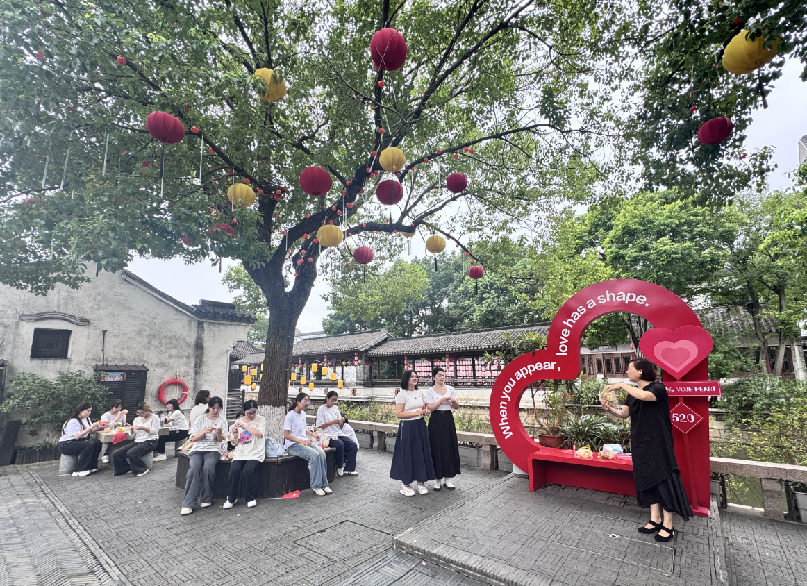 为了弘扬中华优秀传统文化,让师生们感受节日的独特魅力,学院还在荡口古镇广场上开展了扭扭棒花灯制作活动。学院关工委副主任王继红老师以中秋寄语为引,将阖家团圆的温情融入话语,细致解读中秋“祭月、赏月、思亲”的文化内涵,既传递了对同学们的节日祝福,也让大家在温情讲述中加深了对传统节日的认知。师生们化身“手作匠人”,带着对双节的期待,沉浸式投入到这场手工的创作中。指尖翻飞间,普通的扭扭棒逐渐变成花朵装饰着灯笼,当暖光灯串嵌入其中,灯光透过灯笼的缝隙洒出,映照着每个人专注又满足的笑容。