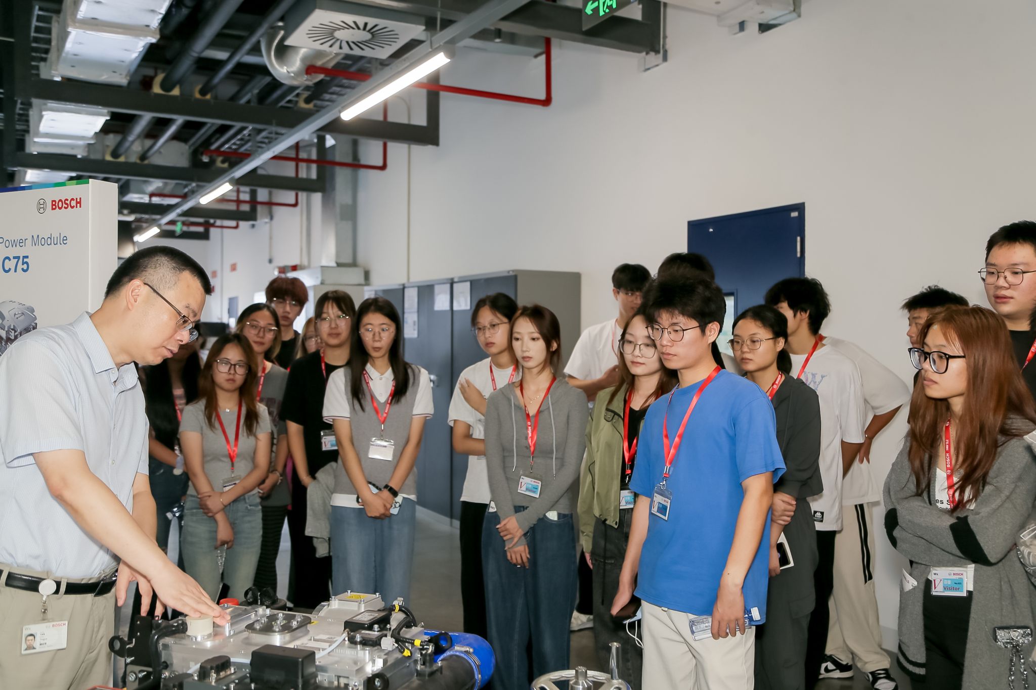 同学们在企业工作人员的有序引导下,分为两组走进柴油共轨系统生产车间与现代化物流中心。参观高度自动化的生产线精准运转、智能物流系统高效调度;并围绕前沿技术应用细节、企业对技能人才的核心要求等问题积极提问。大家还聚焦新能源领域,系统了解氢燃料电池的核心——双极板电堆技术。通过企业讲师的拆解讲解,清晰掌握了其与传统电池的本质区别。当了解到该技术已为新能源物流车提供兼具环保性与经济性的解决方案时,同学们对绿色动力的产业化应用充满期待,也深刻感受到前沿技术对产业变革的推动作用。