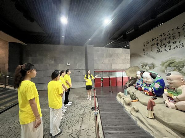 调研第一站:中国泥人博物馆。踏进中国泥人博物馆,实践团感受到岁月流转的深厚文化底蕴尽展泥人身上。博物馆里,按照时空顺序展现了我国泥人发展的历史。造型各异、惟妙惟肖的泥塑作品展示出不同时代背景下人们的生活场景和精神风貌。有麦积山小沙弥,微微笑着,透着喜悦;有敦煌彩塑,显得祥和柔美;有富有浓郁民俗气息的大阿福,展现出灿烂绚丽的民间艺术文化。