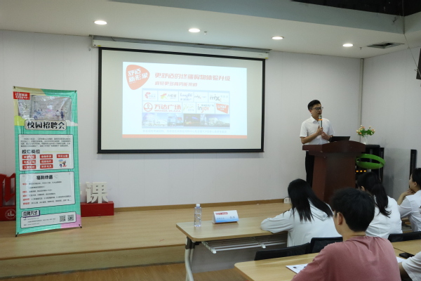 在宣讲招聘会开始前,俞林详细介绍了管理学院的人才培养情况,强调了校企合作的重要性。他指出管理学院一直致力于为学生提供高质量的教育资源和实践能力的全面培养,通过与优秀企业建立校企合作机制,进一步增强学生的求职竞争力。