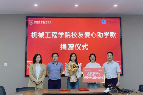机械学院2023级学生小W(化名)于今年5月在无锡市精神卫生中心确诊为重度抑郁躯体化障碍,治疗期间需要大量医药费,而该生家庭经济困难,实在无力承担。在了解情况后,众多校友自发捐款并倡议设立机械工程学院“校友助学金”,助力更多贫困学子成长成才。