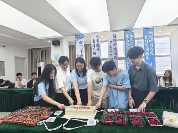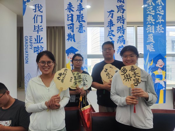 欢送会现场气氛热烈而温馨,领导们与毕业生们共同切下祝福蛋糕,寓意着毕业生们的人生之路将如蛋糕般甜美圆满。合影留念后,书法协会的同学们为毕业生们送上团扇祝福,毕业生们也为学弟学妹们留下了一封封满载深情的信件,传递着他们最真挚的祝福和期望。