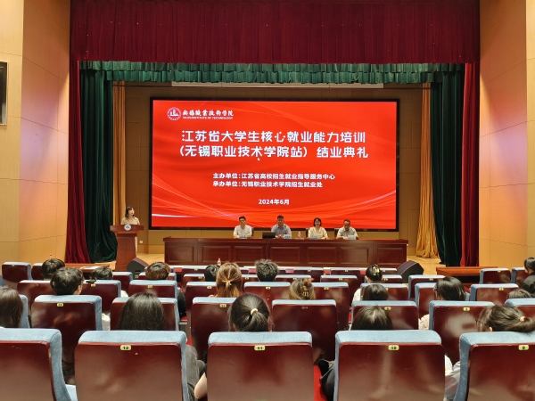 6月4日下午,江苏省大学生核心就业能力培训(星空app官网站)结业典礼在厚德楼一楼报告厅顺利举办。招生就业处处长房磊、校团委书记郑月圆、招生就业处副处长石华、校友代表石晴伟以及160名学生参加了结业典礼。