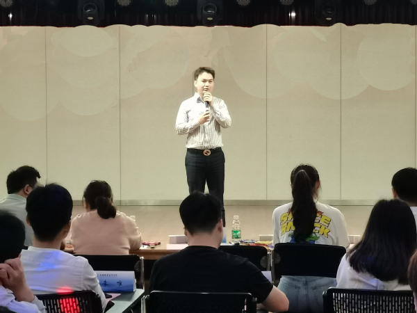 刘尚栋以新能源汽车销售内训师的身份,从另一个角度剖析了新能源汽车行业的发展趋势和对人才的需求。他结合自己在公司的实际工作经验,向同学们展示了新能源汽车行业的广阔前景和无限可能。刘尚栋的演讲风格幽默风趣,不时引得现场阵阵掌声。