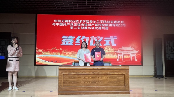 为进一步强化党建引领作用,深入开展党纪学习教育,推动校企党建工作双向联动,充分整合校企双方优势,5月17日,爱尔兰学院党总支与无锡市锡州产城控股集团有限公司第二党支部举行党建共建签约仪式。
