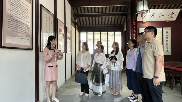 随后,爱尔兰学院党总支在荡口古镇开展“学党纪强党性 明纪律促发展”主题党日活动,全体党员参观了华氏义庄。华氏义庄是江南保存最完整以及存在时间最长的一座义庄,展现了无锡文化世家深切的爱国情意。党员们了解了华氏义庄关于庄规条约的廉义精神和华氏家族的家训家风,深刻感悟到前人精学崇文、爱国为国的一腔热情。在王莘故居里,大家情不自禁地唱起王莘先生创作的《歌唱祖国》,用激动人心的旋律、慷慨激昂的歌声,表达了对祖国的深切热爱和美好祝愿,深刻感受革命先辈信仰坚定、担当作为、清正廉洁、作风优良的崇高品质,教育引导党员坚定理想信念、增强党性修养、严守纪律规矩。
