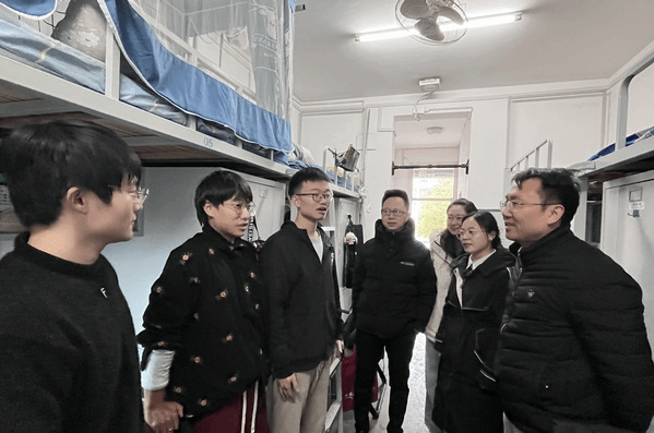 走访过程中,老师们亲切地与同学们开展交流。关心同学们的返校情况、生活学习中是否存在困难、并与同学们交流寒假的收获和和新学期的学习计划等情况。老师们也提醒同学们要尽快调整学习状态,合理规划新学期生活,养成良好的作息习惯,以饱满的热情投入到新学期的学习生活中去;要增强安全意识,注意人身安全、交通安全、财产安全以及宿舍内的用电安全等。