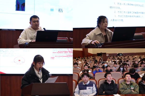 三位同学以优异的学习成绩、丰富的社会实践活动、志愿者服务活动以及良好的组织管理能力等方面,向同学们树立了榜样的标杆,勉励同学们要青春有梦,脚踏实地;胸怀中国梦,坚定理想信念,务实进取。三位学生代表还向全体学生解读科普《江苏省高校本专科学生资助政策》、《星空app官网本专科学生奖助政策》和《学生医保指南》三个文件,让同学们详细地了解到江苏省和学校的相关资助政策以及就医时使用医保的相关知识。