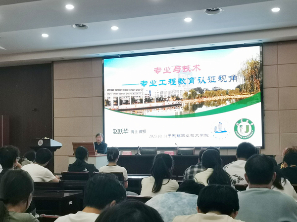 为进一步提高我校本科学生对专业和技术的认知,10月31日下午,物联网技术学院关工委在国交二楼报告厅举办专题报告会,邀请江苏大学关工委赵跃华教授到校作《专业与技术--基于专业工程教育认证视角》的专家报告。报告会由物联网学院副院长乐明于主持,物联网学院、机械学院和控制学院60余名本科生代表参加。
