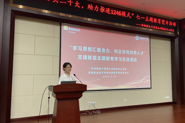 控制技术学院集成电路技术系系主任肖国玲以“学习思想汇聚合力,校企协同共育人才”为主题与企业方进行了深入交流,希望以党建联盟为平台,围绕人才培养方案、课程开发、师资团队建设、项目合作等方面加强双方合作,共同助推无锡市集成电路产业的发展。