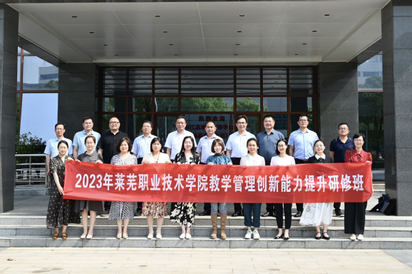 储开峰向参加此次培训的全体学员表示热烈欢迎,介绍了我校在教育教学、师资队伍建设、服务区域经济发展、特色办学等方面取得的成绩。徐安林介绍了本次研修班的课程安排等情况。本次研修班将围绕高职院校内涵建设与发展模式、师资团队教学科研能力提升、新时代职教实践与管理创新能力提升等主题开展交流。随后,王志强代表参加本次研修班的全体学员感谢我校对于研修班的重视与支持,从珍惜学习机会、强化培训纪律、提升工作能力等方面,对莱芜职业技术学院的老师提出学习要求。