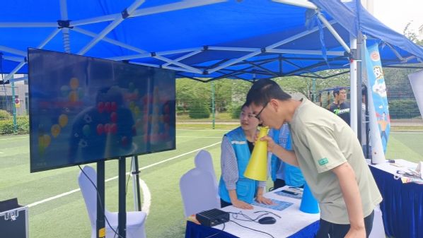 活动现场不仅有趣味人偶与同学们亲密互动,闯关后的精美礼品,更有所有项目完成后的终极大奖抽取。足球场上,一顶顶蓝色小帐篷之间人来人往,热闹非凡。二十余项心理体验、心理闯关、探索活动,趣味与挑战并存,学生参与热情高涨,现场气氛火热,欢笑不断,共同体验心理活动的乐趣,缓解压力,增强自主身心平衡能力,唤醒快乐因子。