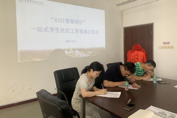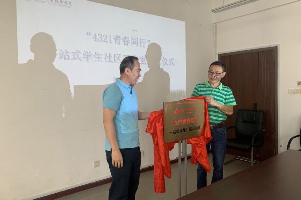 会上,周嫄介绍了牡丹园“一站式”学生社区建设推进情况。郭再泉和周勋勋分别宣读《关于成立外语与旅游学院牡丹园学生社区工作组的意见》和《牡丹园“一站式”学生社区工作组签约协议书》,外语与旅游学院、机关三支部、马克思主义学院共同签署了工作协议。最后,江铭和郭再泉一同为“4321青春同行”活动室揭牌。