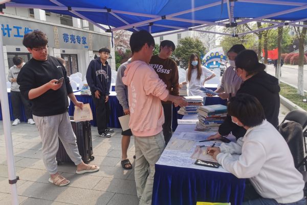 为深入学习贯彻党的二十大精神,办实事、挑大梁,加深支部工作与业务工作的融合,推进“书香职院”品牌建设,在2023年世界读书日期间,图书馆直属党支部先后于4月6日、11日、25日,在校“一站式学生社区”门前广场,开展了“捐书传爱 书香恒远”主题党日系列活动。活动以支部党员为基干,动员其他馆员参与,组成图书审核、图书清点、赠书颁发、图书运送以及图书整理等五个组,由支部书记倪卫东带队。本次系列活动受到了学生读者们的热烈参与,共收捐赠图书9000余册,达到了活动预期,圆满收官。